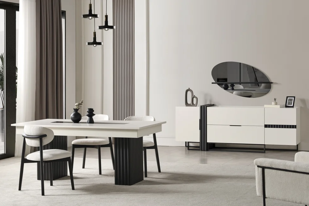 Safir Yemek Odası Takımı, geniş ve kullanışlı alanlarıyla yaşam alanınıza zarafet ve düzen